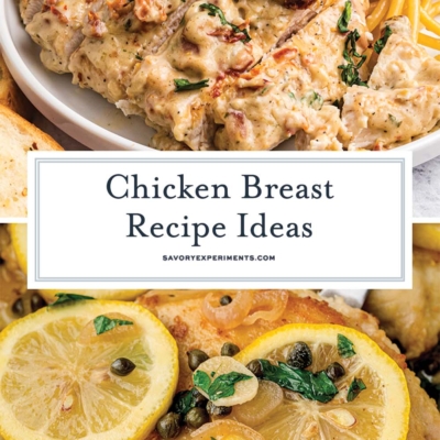 Boneless chicken breasts tend to get a bad rap. They are easy to over cook, therefore making them tough and less appetizing. However, to get juicy chicken breasts, you just need to have a great recipe. And lucky for you, I’ve compiled easy chicken recipes in one place; from chicken cutlets to creamy sauces and chicken pot pie. Flavorful chicken made from pantry staples and many are also great for meal prep.