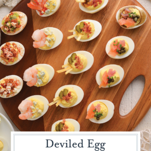 I’ve been making deviled eggs bars for years now, but the trend has just taken off and I’m HERE for it! It’s a running joke that a 2-egg omelet is too much for me, but give me a platter of deviled eggs and I’ll probably eat a dozen by the time I’m done “grazing”.
