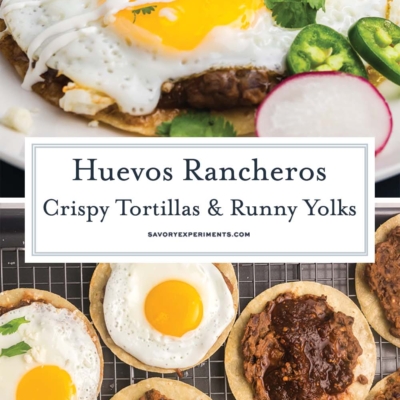 These easy huevos rancheros stack lightly blistered corn tortillas with refried black beans, ranchero sauce, and jammy-yolk fried eggs for a restaurant-style breakfast at home. Finish with queso fresco, crema, and cilantro- plus crunchy radish, jalapeño, or avocado if you like.