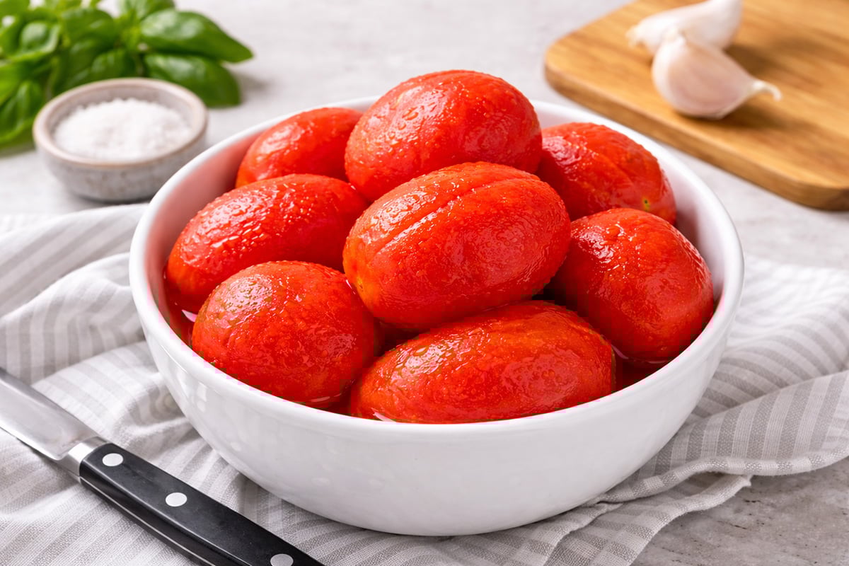 Peeled tomatoes are perfect for recipes where you want a smoother texture and better mouthfeel. The skin doesn’t always break down completely during cooking, so removing it ahead of time can make your sauces, soups, salsas, and preserved tomatoes much more pleasant to eat.