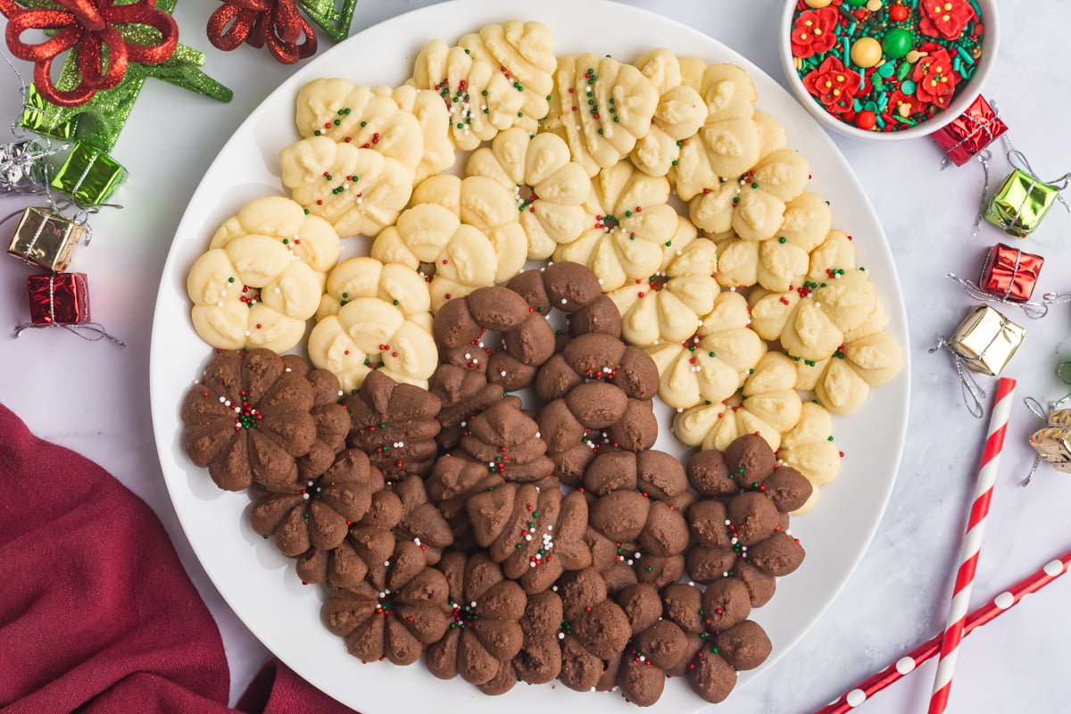 A holiday classic, these spritz cookies, sometimes called cookie press cookies or butter cookies, are loved by all- and here is exactly why.