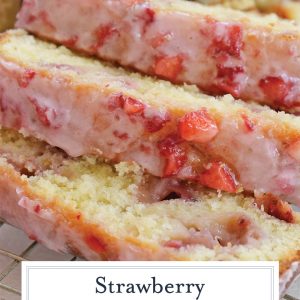This strawberry pound cake recipe is rich, moist and made with fresh strawberries. Topped with a strawberry glaze for the perfect finish.