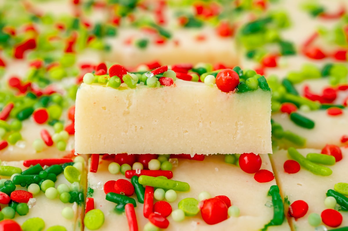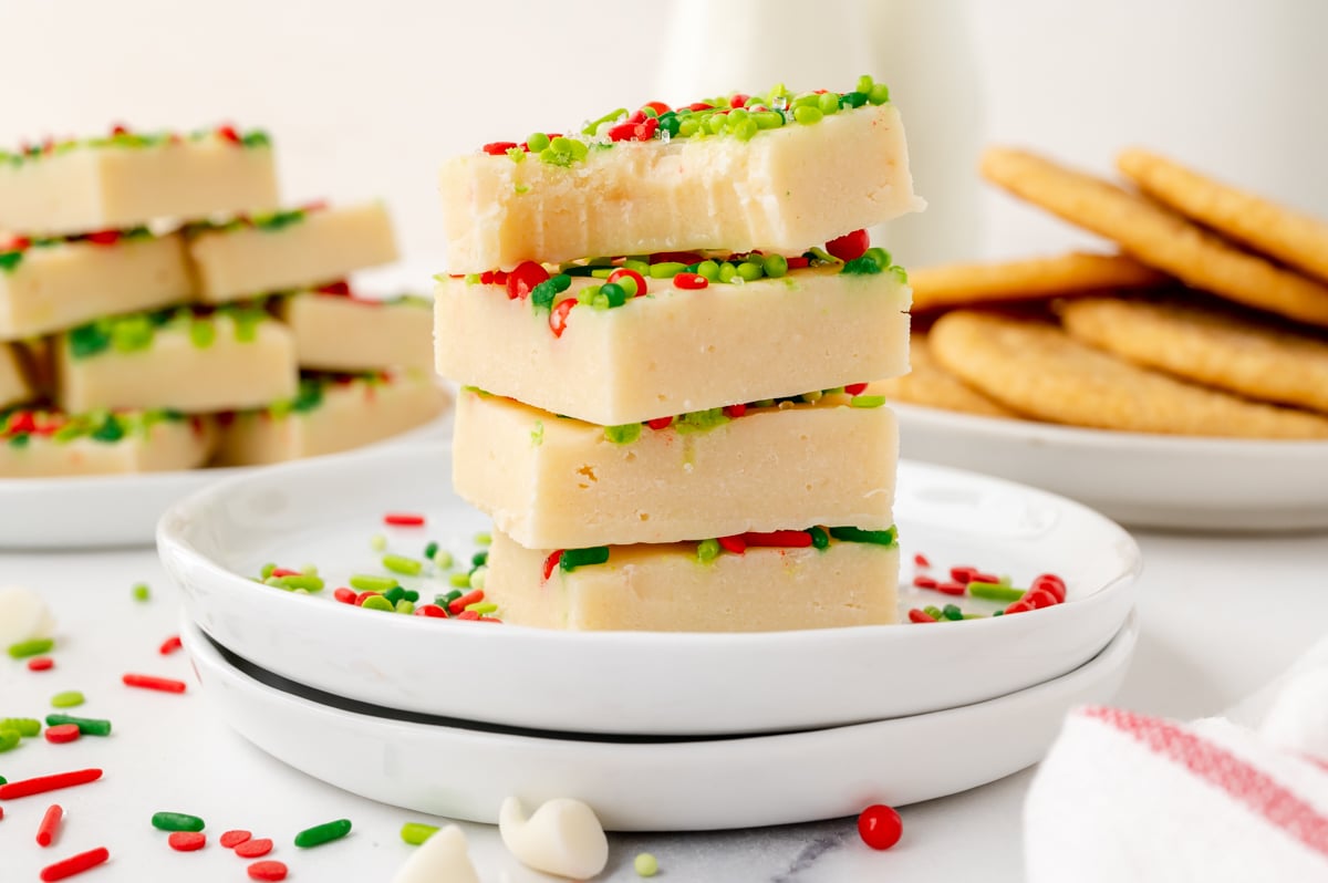 This sugar cookie fudge packs classic vanilla-butter flavor into a smooth, no-thermometer fudge—perfect for holidays, gifting, and cookie trays. Melt white chocolate with sweetened condensed milk and sugar cookie mix, then chill and slice for festive squares topped with sprinkles.